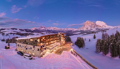 Our hotel is situated in Seiser Alm, directly next to the Paradiso slope, which is conveniently connected to 1200 km of well-prepared slopes of the Dolomiti SuperSki area. Admire breathtaking panoramic views of our Sciliar-Catinaccio UNESCO Nature Park at the altitude of over 2,000 meters.
