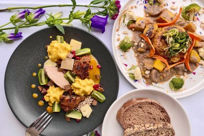 With the smell of herbs from the restaurant and the far view nearly up to the Bodensee, vacations Feeling comes on. That pleasure and vegetable nutrition are by no means contradictory, the guests experience with the daily changing 4-course menus affectionately created by the kitchen team. For all those who want to start a day full of energy, the kitchen surprises with an appetizing breakfast buffet and freshly squeezed juices from the fruit and vegetable basket. The rich lunch buffet is also a treat for the palate. In keeping with the Sonnenberg nutritional concept, all meals are not only vegan, but also free of gluten, sugar and soy. Where else can you have such a good time – from breakfast to dinner?