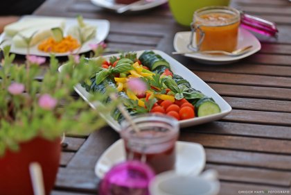 We will spoil your palate with vegetarian-vegan full board. You can enjoy the feel-good breakfast with tea, coffee, fruit juices, fruits, regional cheeses, seasonal vegetables, homemade jams, muesli, porridge, homemade bread and much more until 11 am. In the late noon, fortify yourself with freshly prepared soups and salads before being invited to a buffet of vegetarian-vegan specialties in the evening.