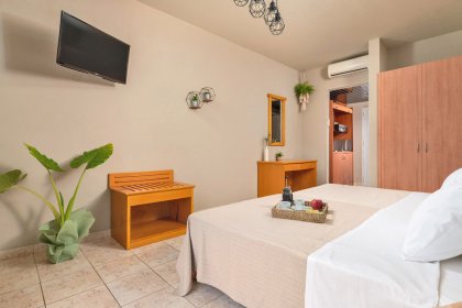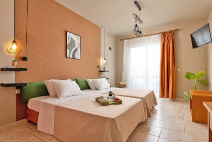 However, our vegan philosophy is not limited only to our vegan restaurant. Holidays are all about relaxing, creating new memories and finding inner balance. Guests can either treat themselves with a Yoga class on our green veranda or, for the extreme sport lovers, visit the Ixia beach where they can enjoy wind or kite surfing under the breath-taking Greek sunset.
