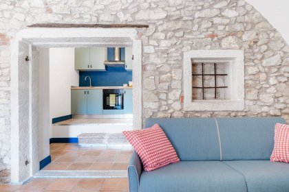 The apartments, characteristically and tastefully converted from the former wine cellars of the 18th century farmhouse, can accommodate up to 4 people each.