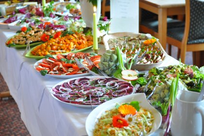 In the restaurant a vegetarian buffet is served for breakfast, lunch and dinner. The ingredients are 100% organic and the dishes vary from German, Italian or Indian cuisine.