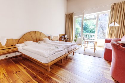A well-trained team of alternative practitioners, masseurs and beauticians is dedicated to health. The daily hotel programme for guests is designed by our therapists and offers a variety of yoga, meditation and lecture programmes. Wellness comes true in the sauna house by the large natural bathing pond. Three saunas, a relaxation room and a bistro invite you to stay and relax.