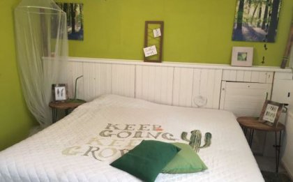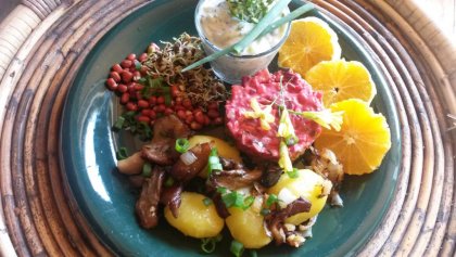 We operate a small family-run vegan bed and breakfast, located in a residental subdivision, right at the edge of a forest. We cultivate our own herbal garden, where we grow over 100 wild, healing and cooking herbs. For those interested in herbals, we happily offer small guided tours through the garden, as well in the adjoining forest and to a nearby meadow full of herbs.