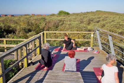 Regular yoga classes in the yoga room or on a platform on the beach, sound meditations and mindful walks round off your holiday programme.