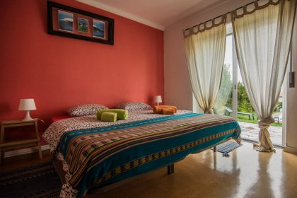 Our guesthouse is located in a quiet and lovely residential area in the small village Palhais – Ribamar with an open view over the surrounding green hills. With 10 minutes walk you can find local shops, cafes and restaurants. For those who would like to enjoy a wider variety, the scenic fishing town of Ericeira is only 4 km away. In less than 20 minutes walk you reach the World Surfing Reserve in Ericeira containing the internationally known surf breaks of Praia Ribeira d’Ilhas, Praia dos Coxos and many more along the coast. We are also only 50 km from Lisboa making us easily accessible from the airport.