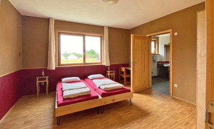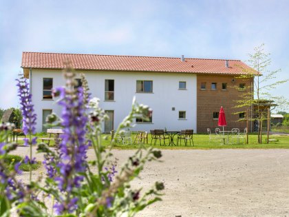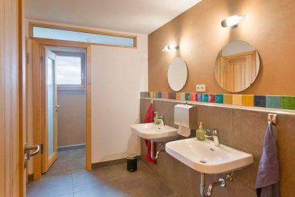 Our Strohtel offers pure eco-luxury and is the first accommodation facility in straw-loam construction in Germany: Clay plaster provides a pleasant indoor climate, straw walls for insulation. The ventilation system with heat recovery and thermal solar systems minimize heating energy consumption. If the sun is not enough, we heat with wood from our forests.