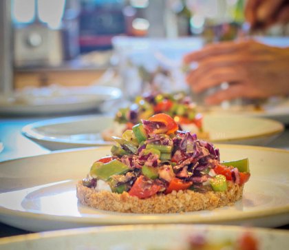 Booking in advance is possible to have lunch and/or dinner in the restaurant that offers members a gentle delicious menu, a tasting of four-course vegan menue made with organic ingredients.