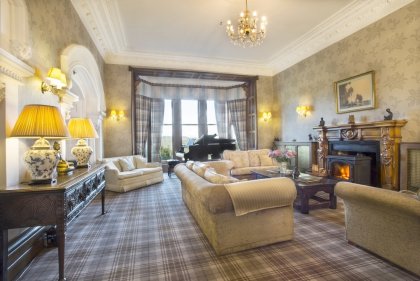 Set in a quiet elevated position with panoramic views over the Vale of Esthwaite, Lake Windermere and the Fells beyond, Yewfield is situated in over 80 acres of its own grounds. The house itself, with its impressive Gothic architecture dates back to 1859.