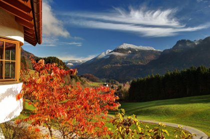The Mountain Retreat Center (MRC) in the small Bavarian village Sachrang, right at the border to Tyrol/Austria, is only a 15 minutes drive away from the highway A8 connecting Munich to Salzburg. Tranquil and modest it is situated hillside, overlooking the little village with only a few restaurants, one shop, church and some housing. The view to the mountains is breathtaking. Silence. Birds singing.