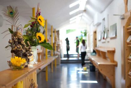Our aim is to provide you with an ideal environment for gaining new insights, accessing your intuition, and rediscovering your inner JOY. The daily routine of yoga postures, breathing exercises, deep relaxation, chanting, meditation and vegetarian meals is designed to have an optimal effect on your body, mind and soul. In the rejuvenating quietude, close to Mother Nature, you can replenish your energy and truly relax.