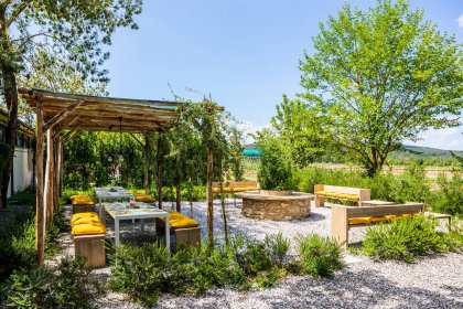 During the day, there are many beautiful places to explore, like Volterra or Larderello. Of Course you can also spend the day relaxing at the organic swimming pool. Or take a little trip of 30 minutes to the sea. In the evening a visit of the organic restaurant in the guesthouse can be highly recommended.
