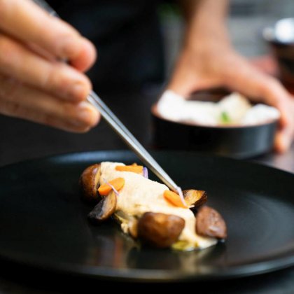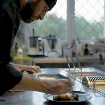 Our restaurant offers a completely plant-based menu with tasting options and is open to the public. Let yourself be surprised by the creativity of our chefs — savor flavorful and colorful dishes that combine traditional country cooking with modern culinary innovation, using produce from our garden and from local farms.