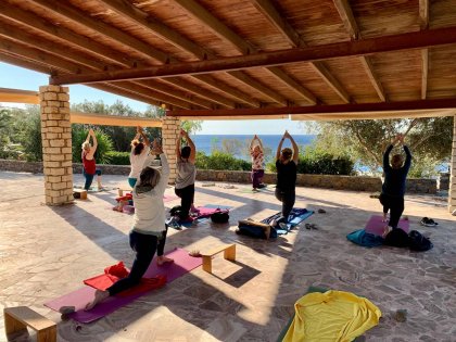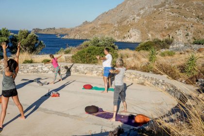 Breakfast is served on the hotel terrace in the morning sun and five times a week there is an excellent vegetarian (vegan on request) Mediterranean dinner (one welcome dinner on the day of arrival, three dinners at the hotel, 1 dinner in a Greek taverna).